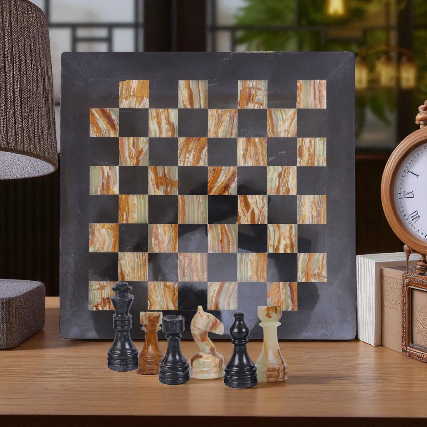 Marble Hives Luxury Handmade Marble Chess Set -Green and Black -12 Inch