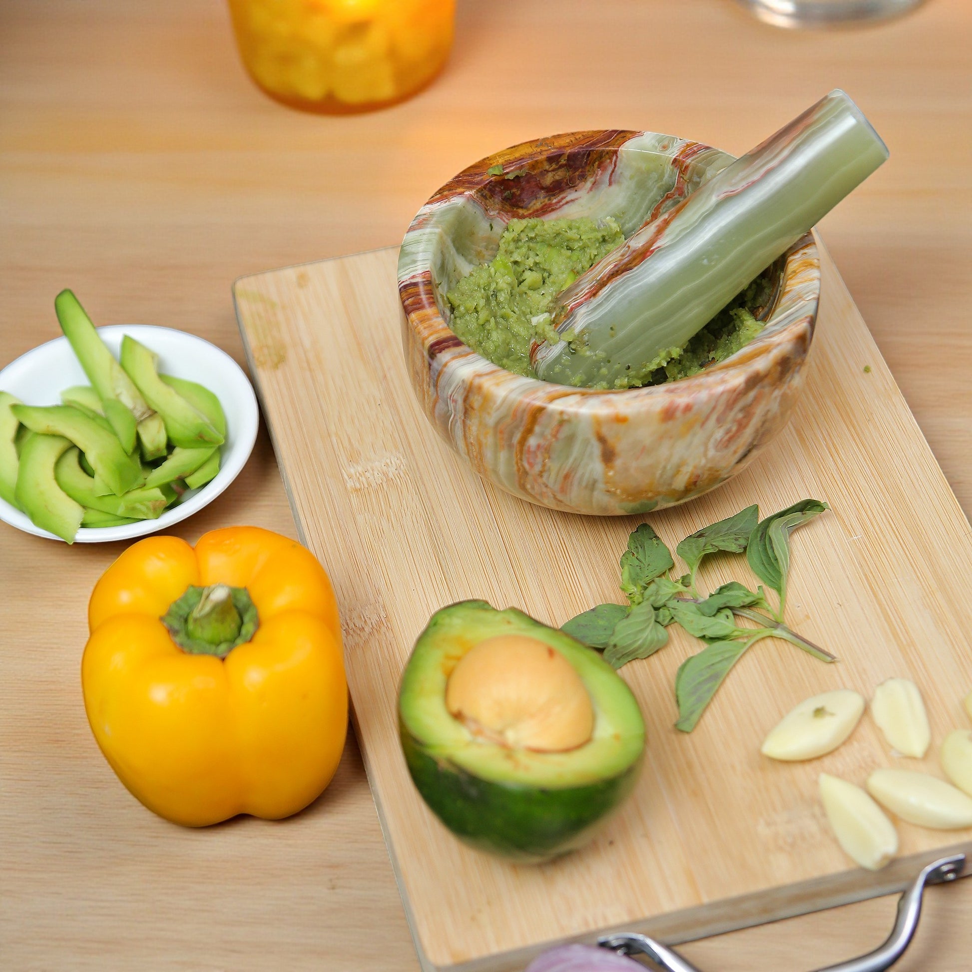 Marble Mortar and Pestle Set (5 inch) Onyx Green