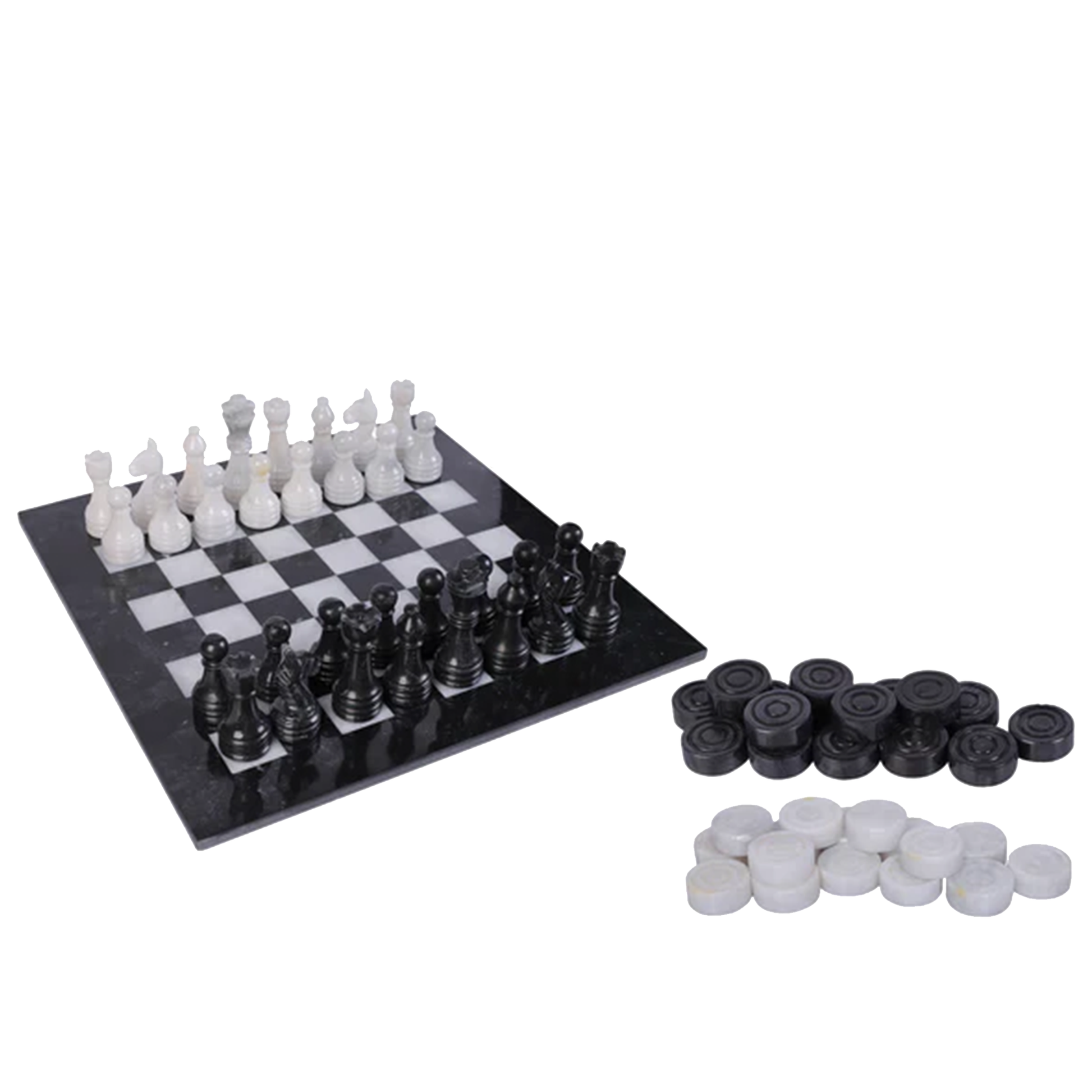 Marble HIves Luxury Handmade Marble Chess Set - Black adn White -12 Inch