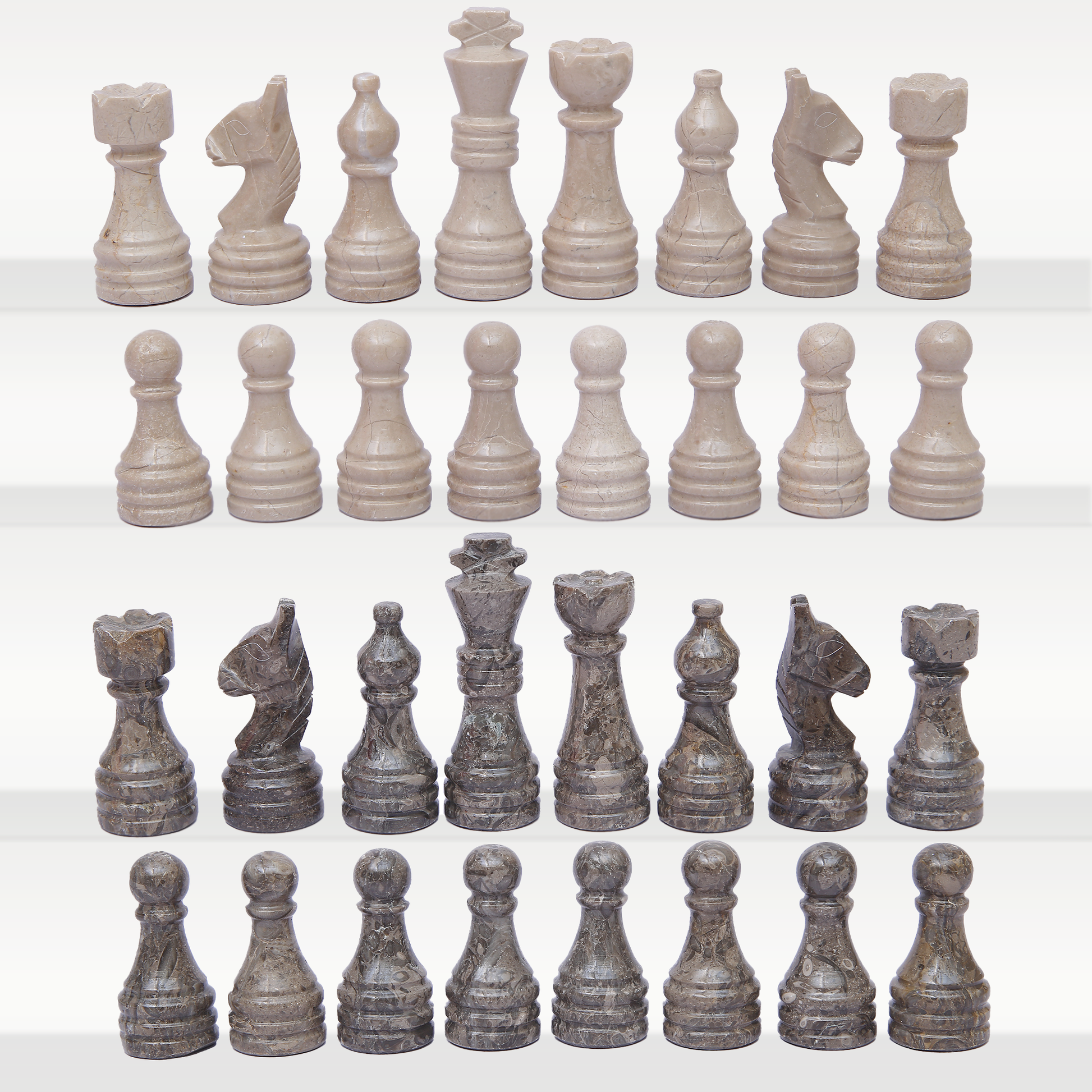 Unique & Durable: Natural stone veining ensures every chess piece is one-of-a-kind and long-lasting.