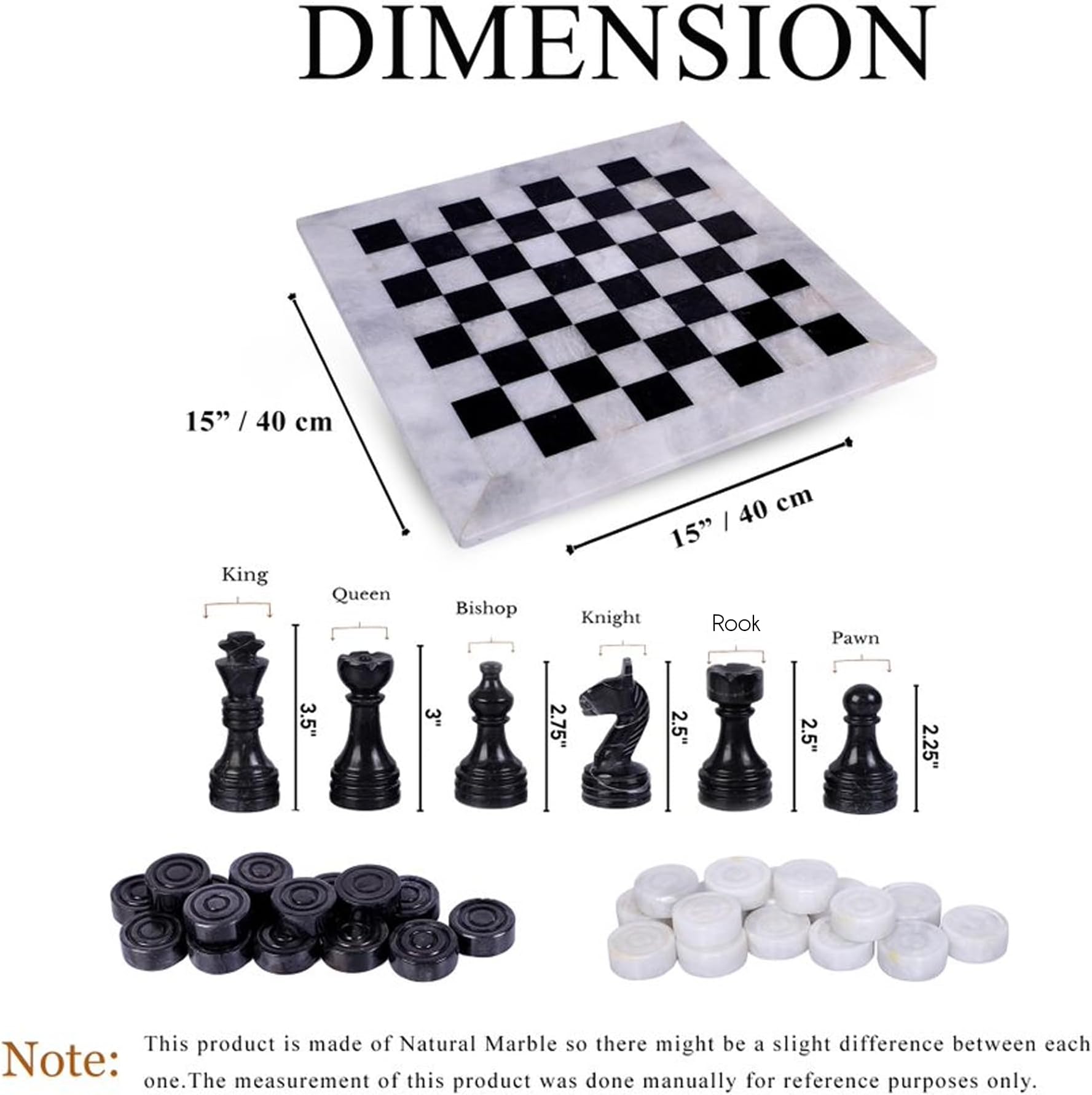 Marble HIves Luxury Handmade Marble Chess Set - Black adn White -15 Inch