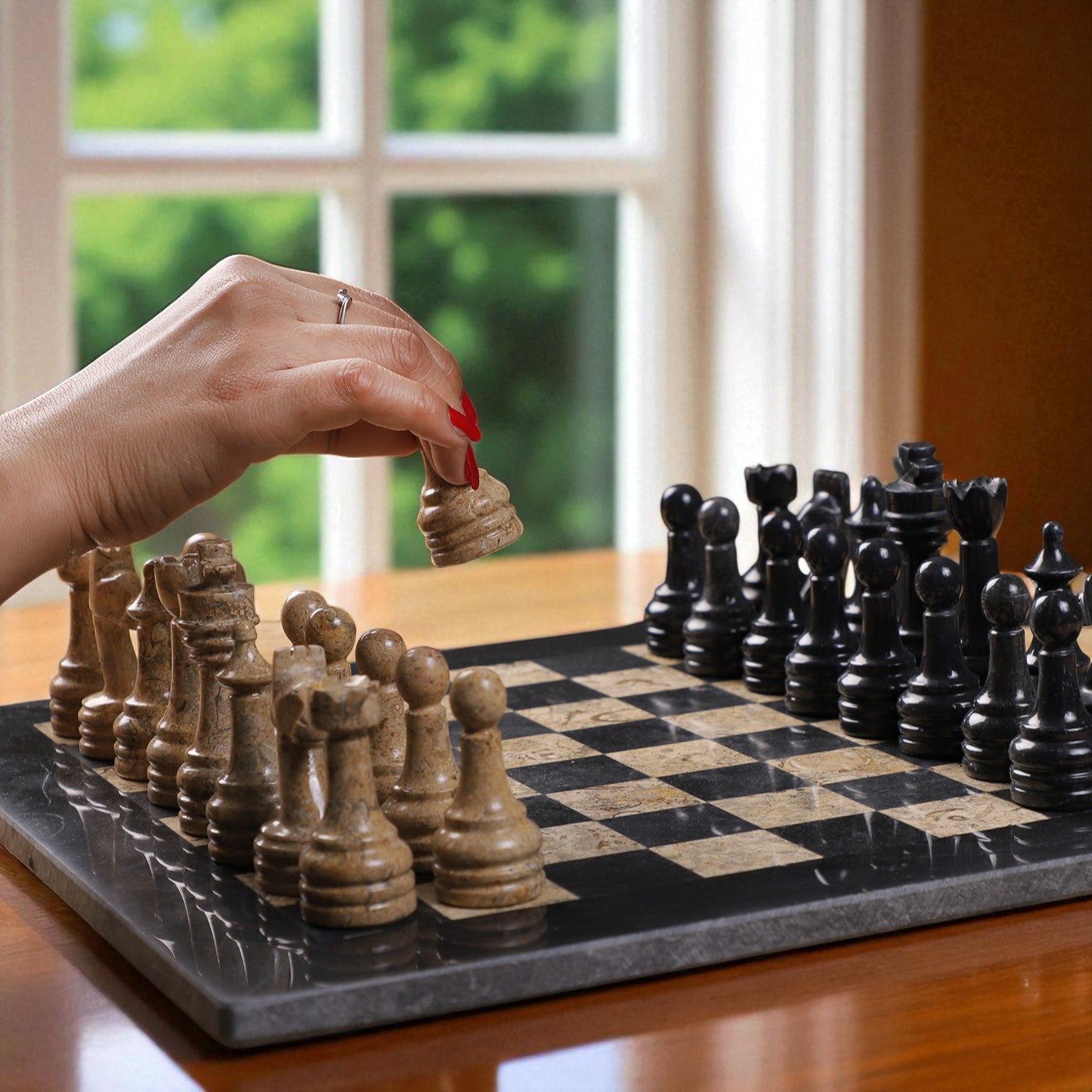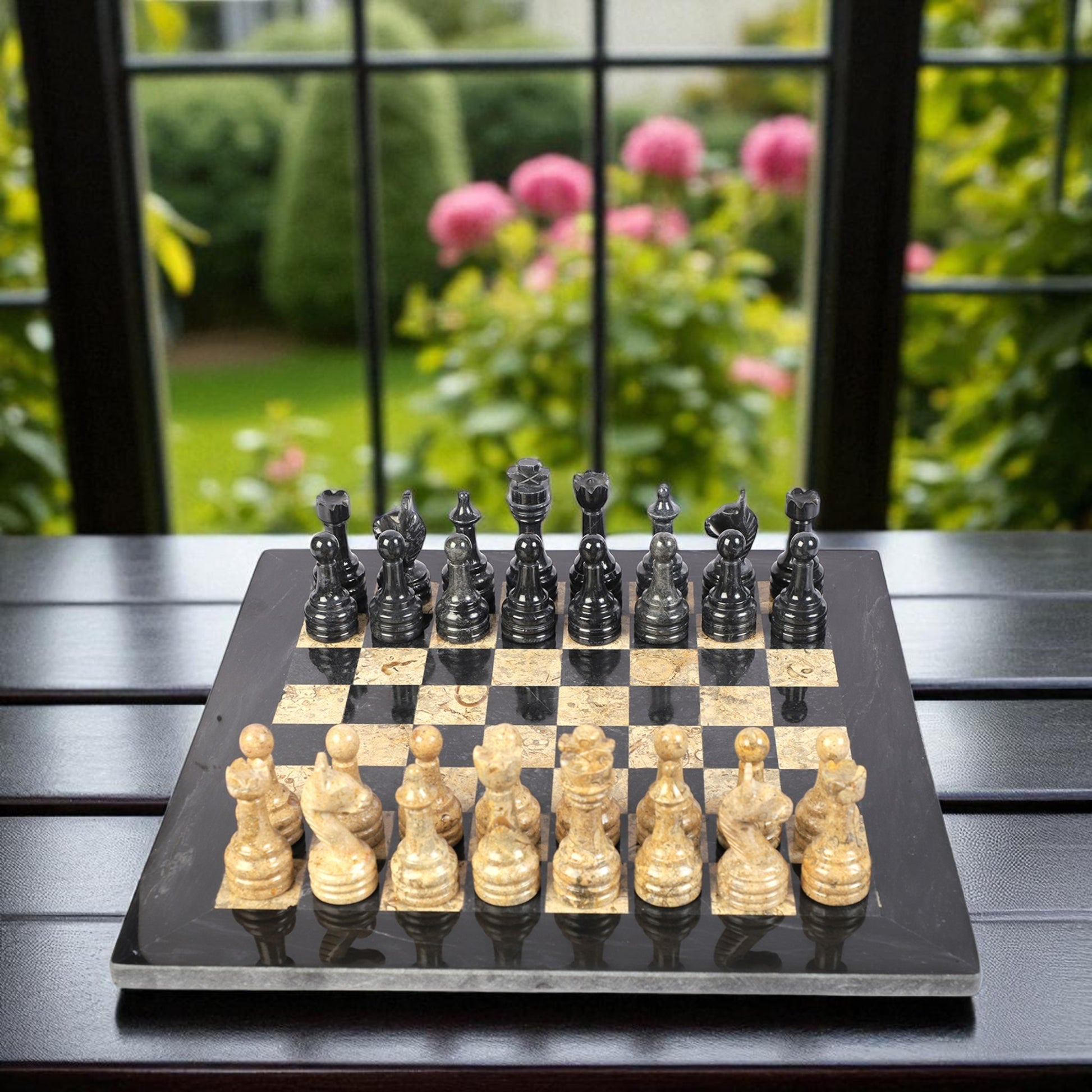 - 📏 Perfect Size: Chess Board with regal pieces (King, Queen, Bishops, Knights, Brooks, Pawns) made from premium-quality marble, offering durability and elegance