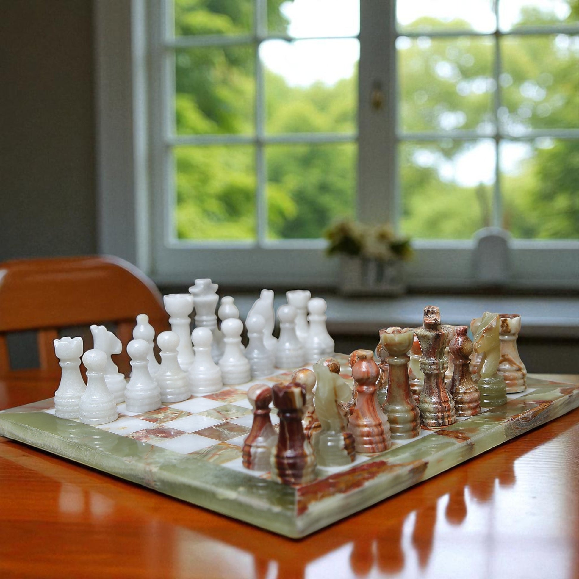 Marble Hives Luxury Handmade Marble Chess Set -Green and White -10 Inch