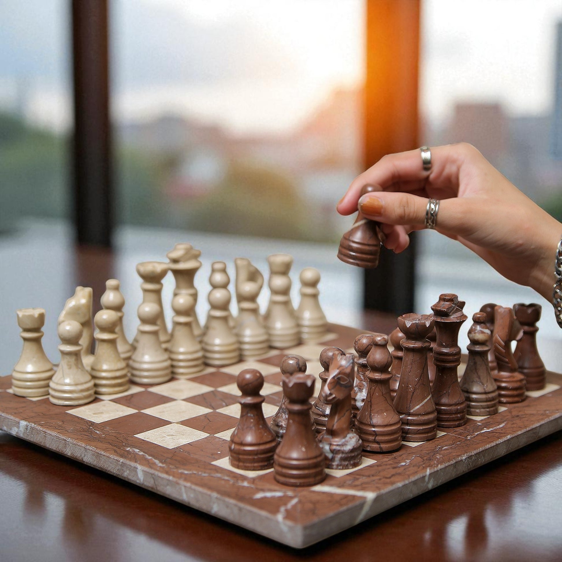 Elegant Contrast: The Marina and Verona tones create a timeless, royal look that enhances any chess set.