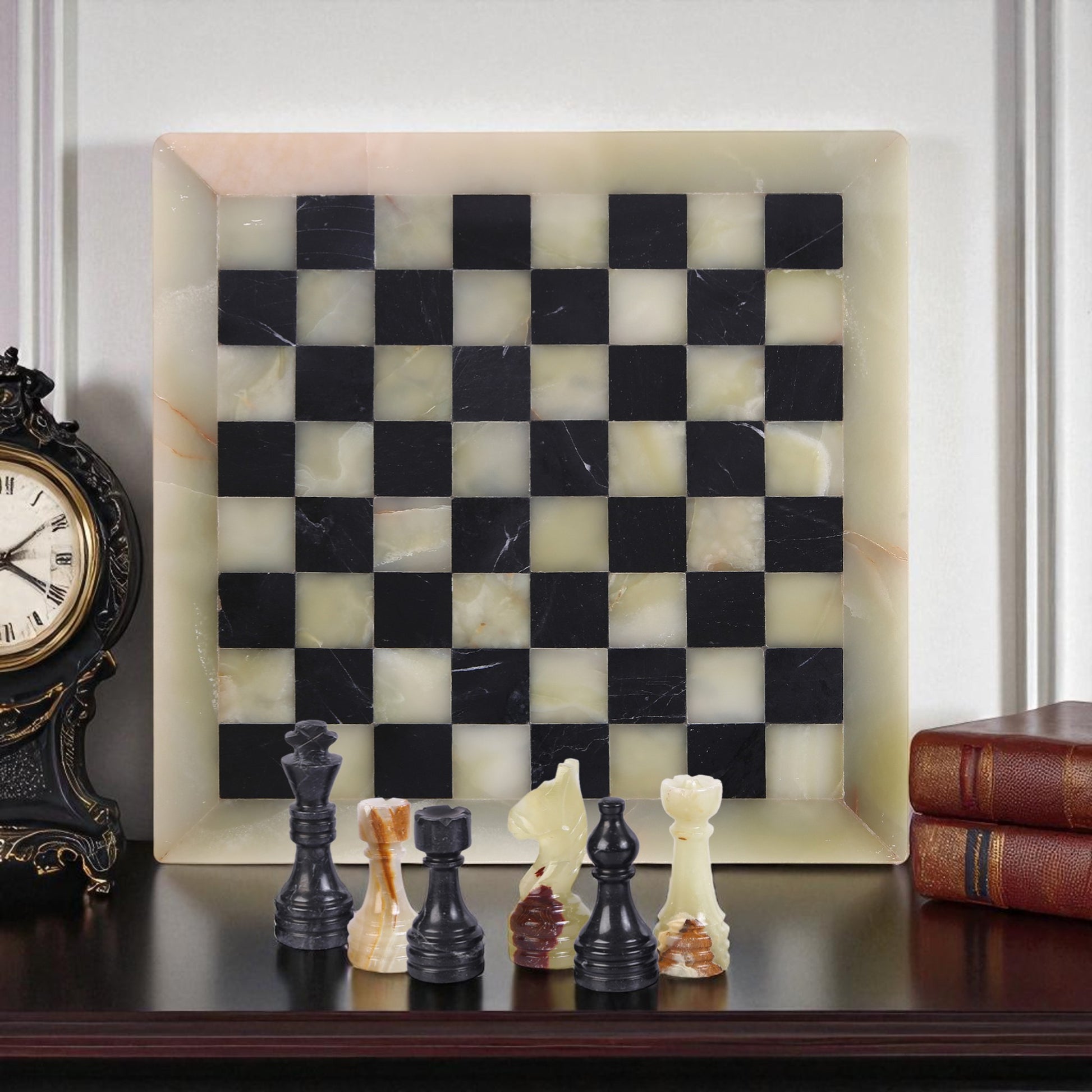 Marble Hives Luxury Handmade Marble Chess Set -Onyx and Black -10 Inch