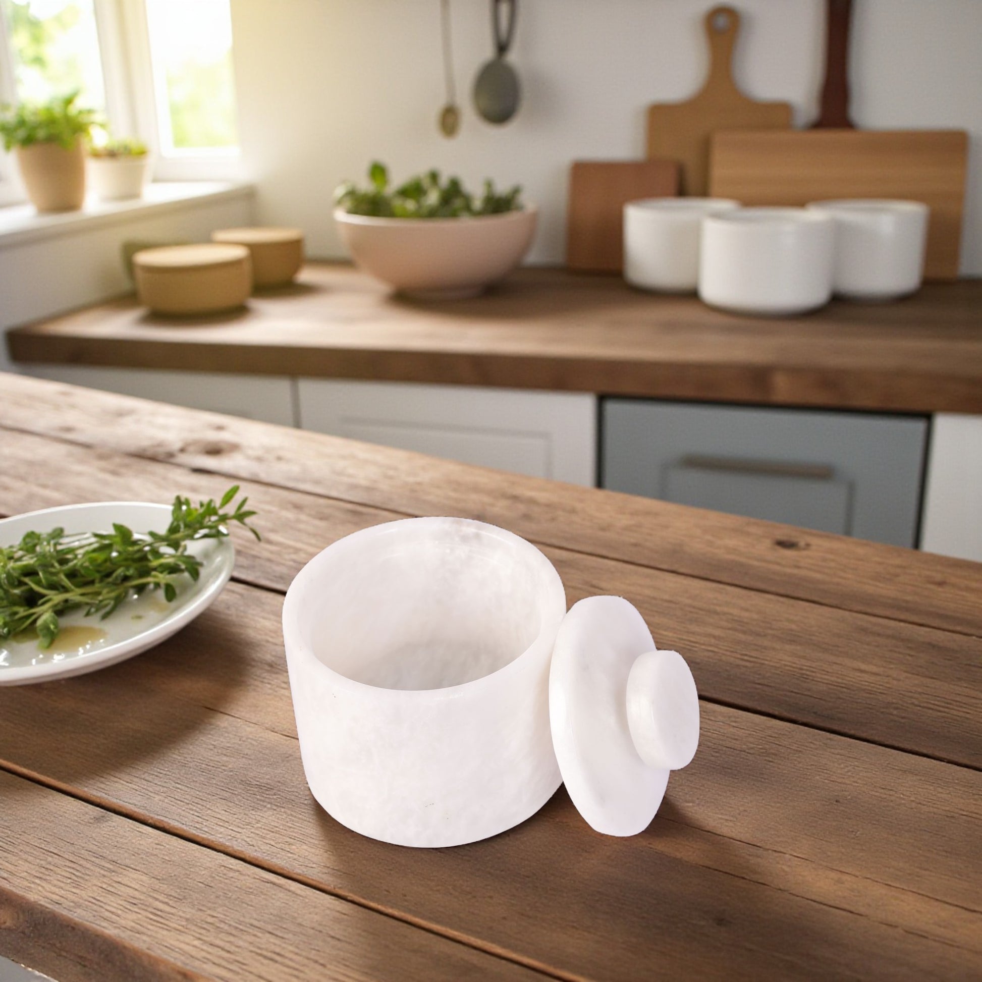 Functional Kitchen Essential: Designed for everyday convenience, these marble salt bowls with lids keep your favorite seasonings, herbs, or spices accessible while elevating your kitchen décor.