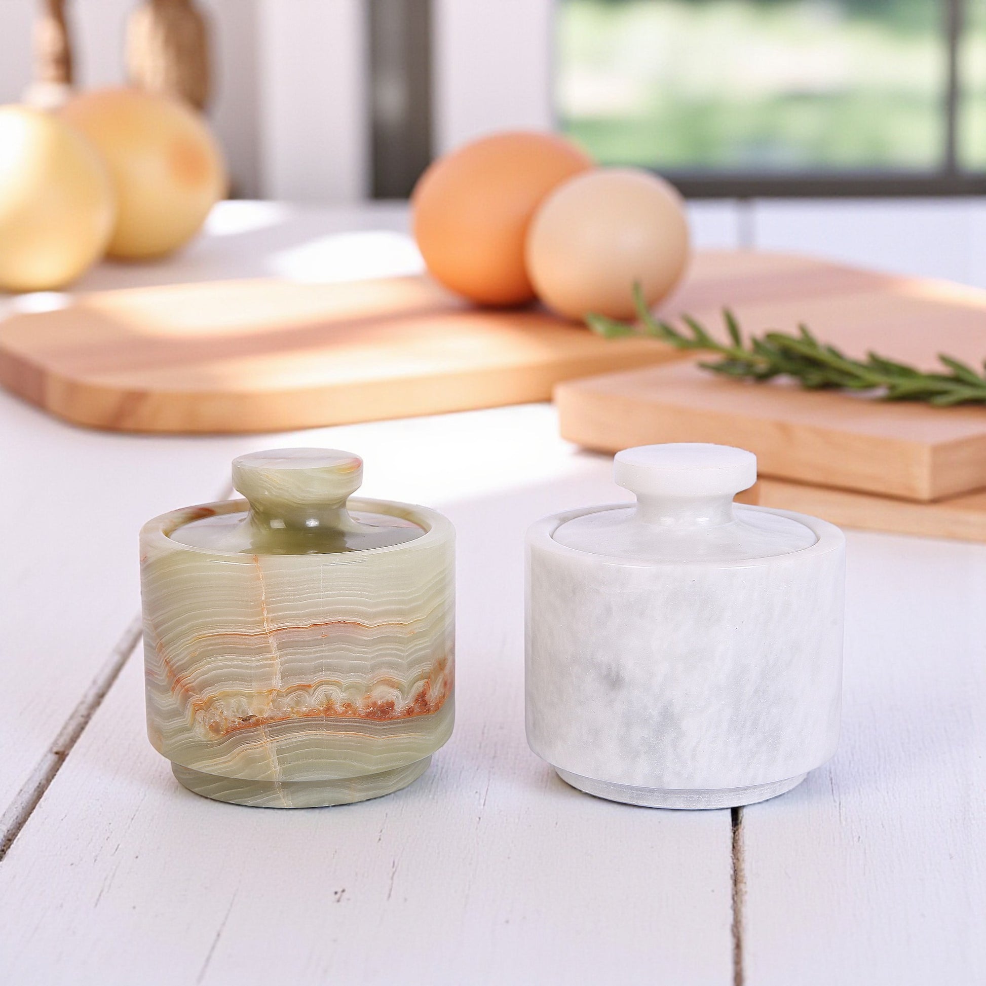 Marble Salt Cellar Set with Lid (Pack of 2) White and Onyx Green