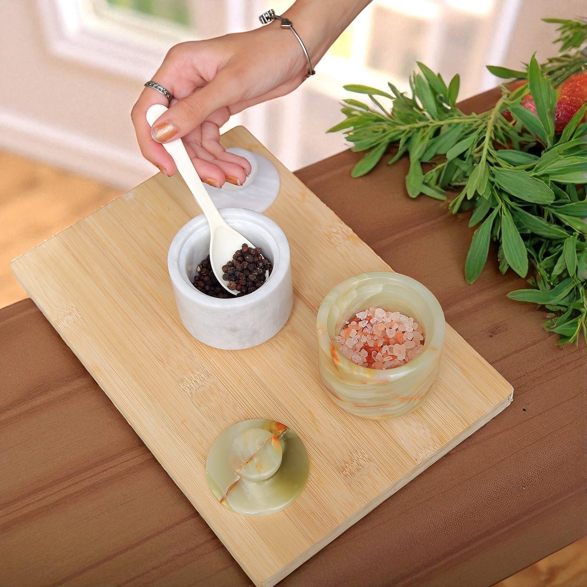 Functional Kitchen Essential: Designed for everyday convenience, these marble salt bowls with lids keep your favorite seasonings, herbs, or spices accessible while elevating your kitchen décor.