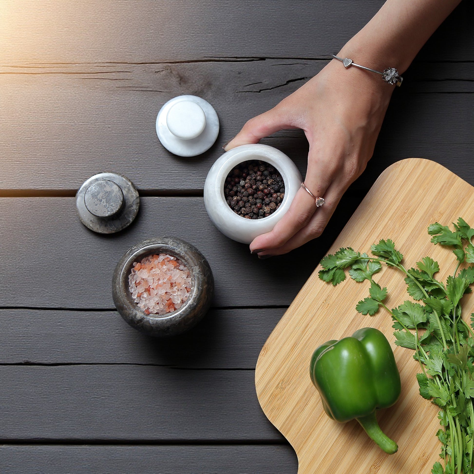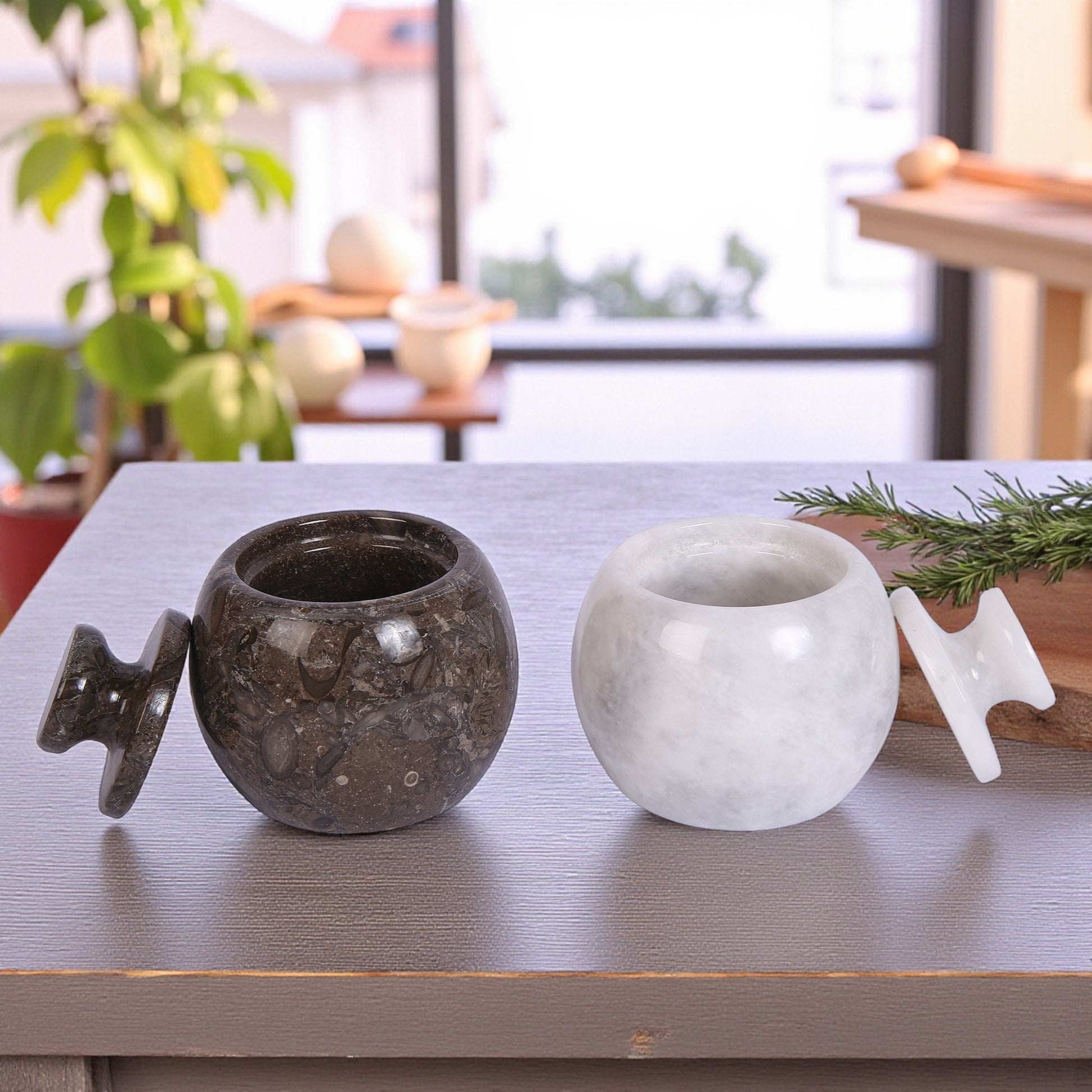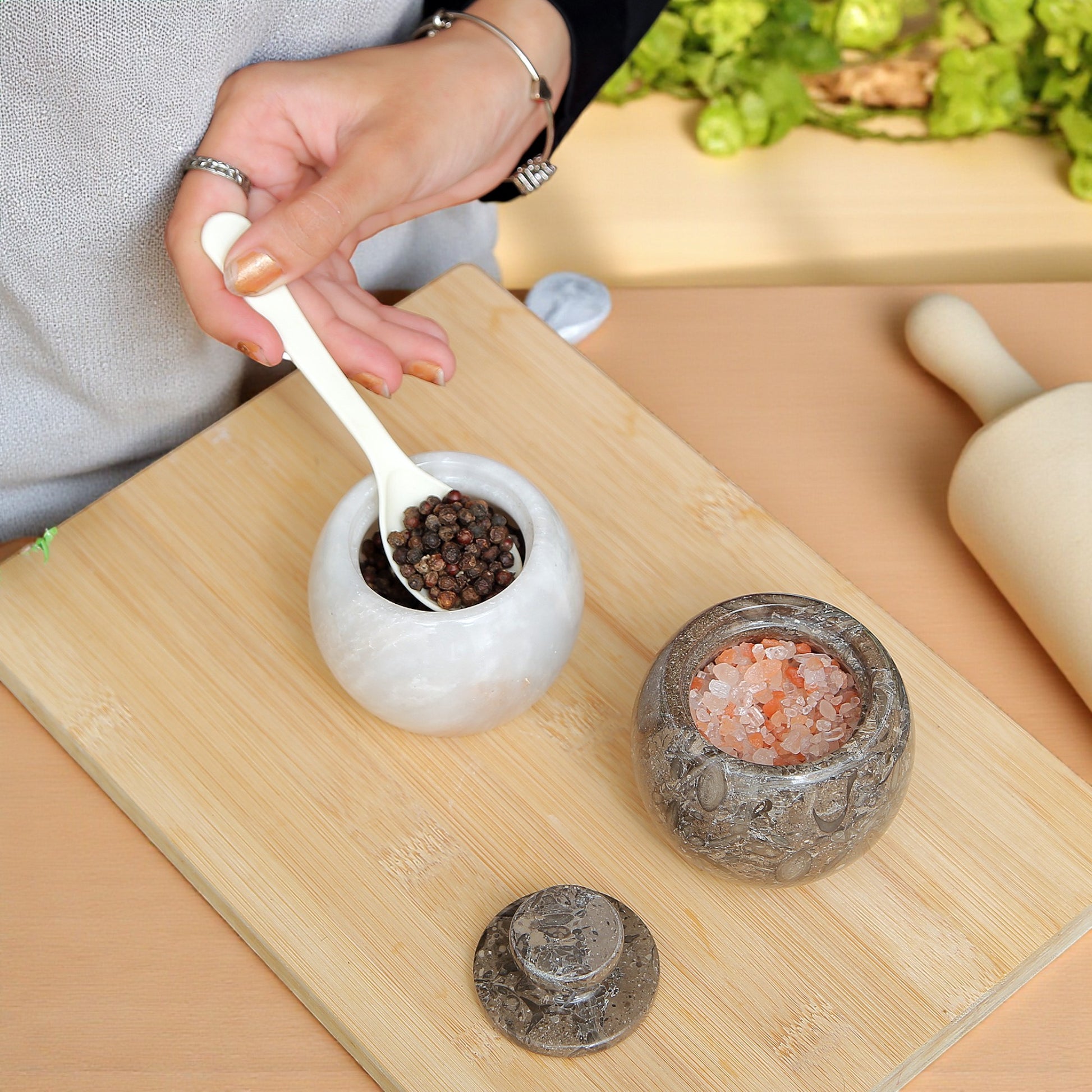 Marble Salt Cellar with Lid- Pack of 2 White and Grey