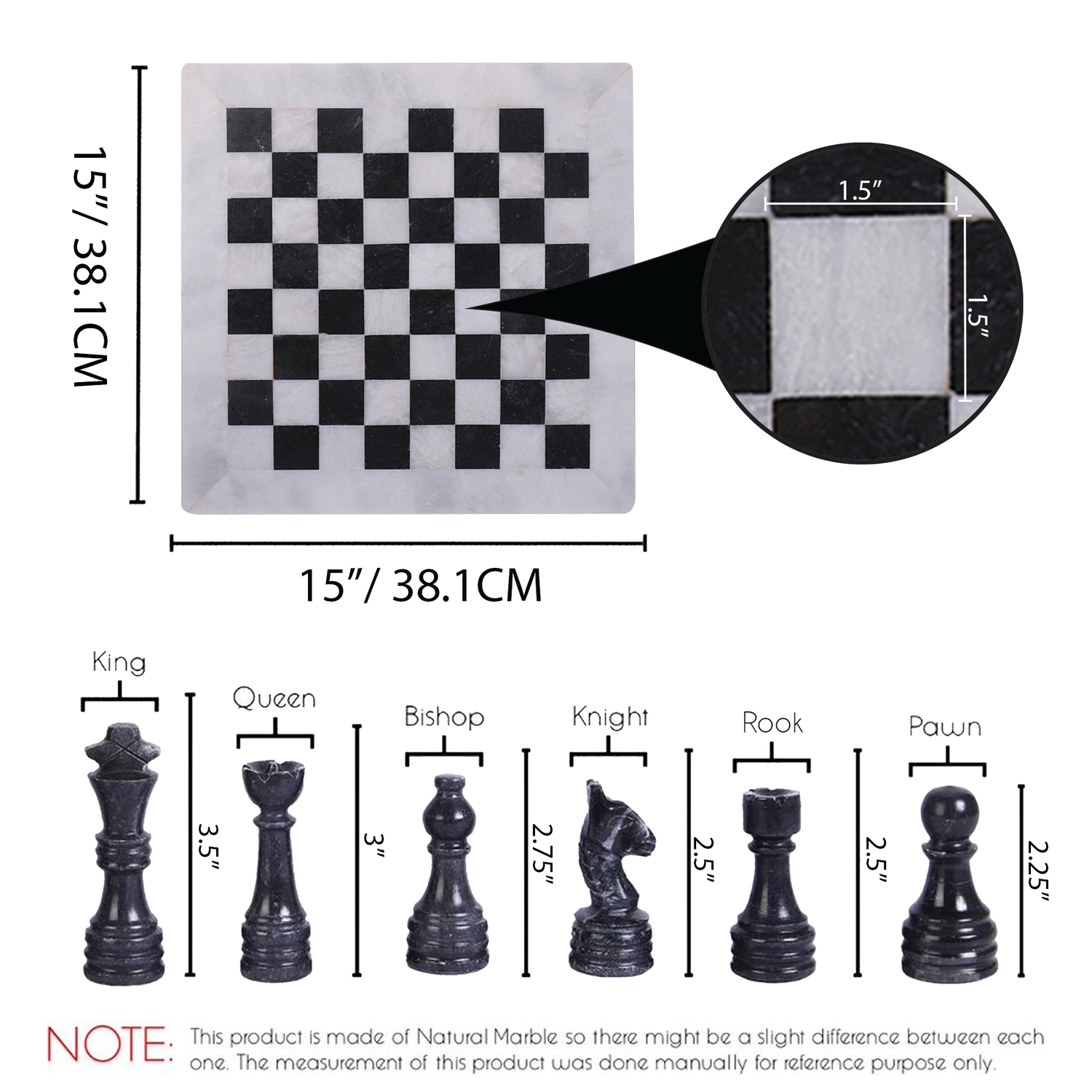 Marble HIves Luxury Handmade Marble Chess Set -White and Black -12 Inch
